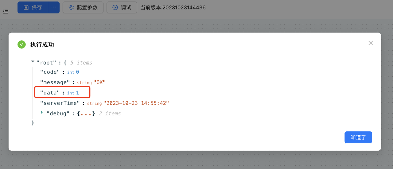 - 调试:可输入入参、环境变量运行逻辑获取返回值;