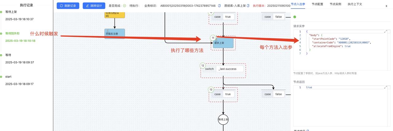 - 右侧为节点属性配置,双击节点可打开,保存配置需点下方提交按钮;